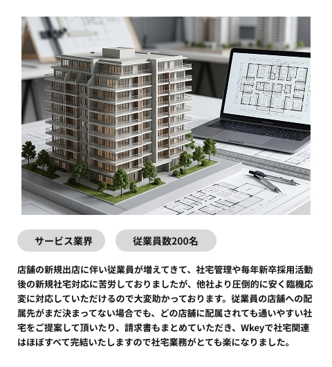 社宅規定作りからワンストップで対応し、企業の不動産業務を効率化します。