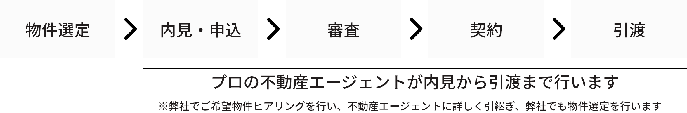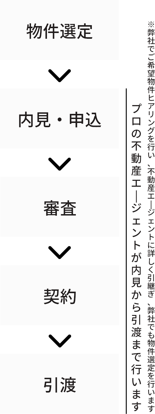会社概要等と弊社で代筆した申込書で審査を行い、物件選定から引き渡しまで法人様の手間を減らします。